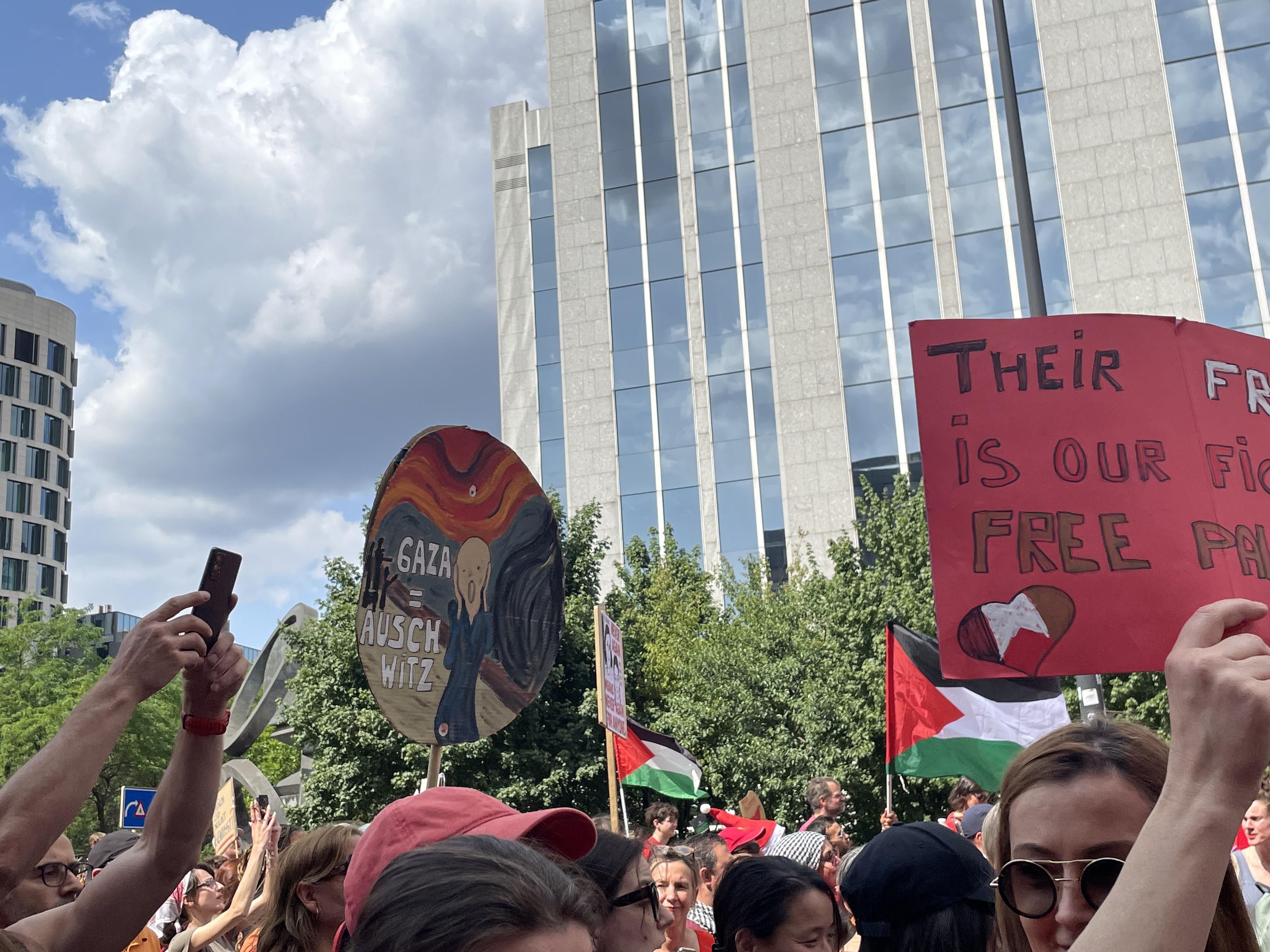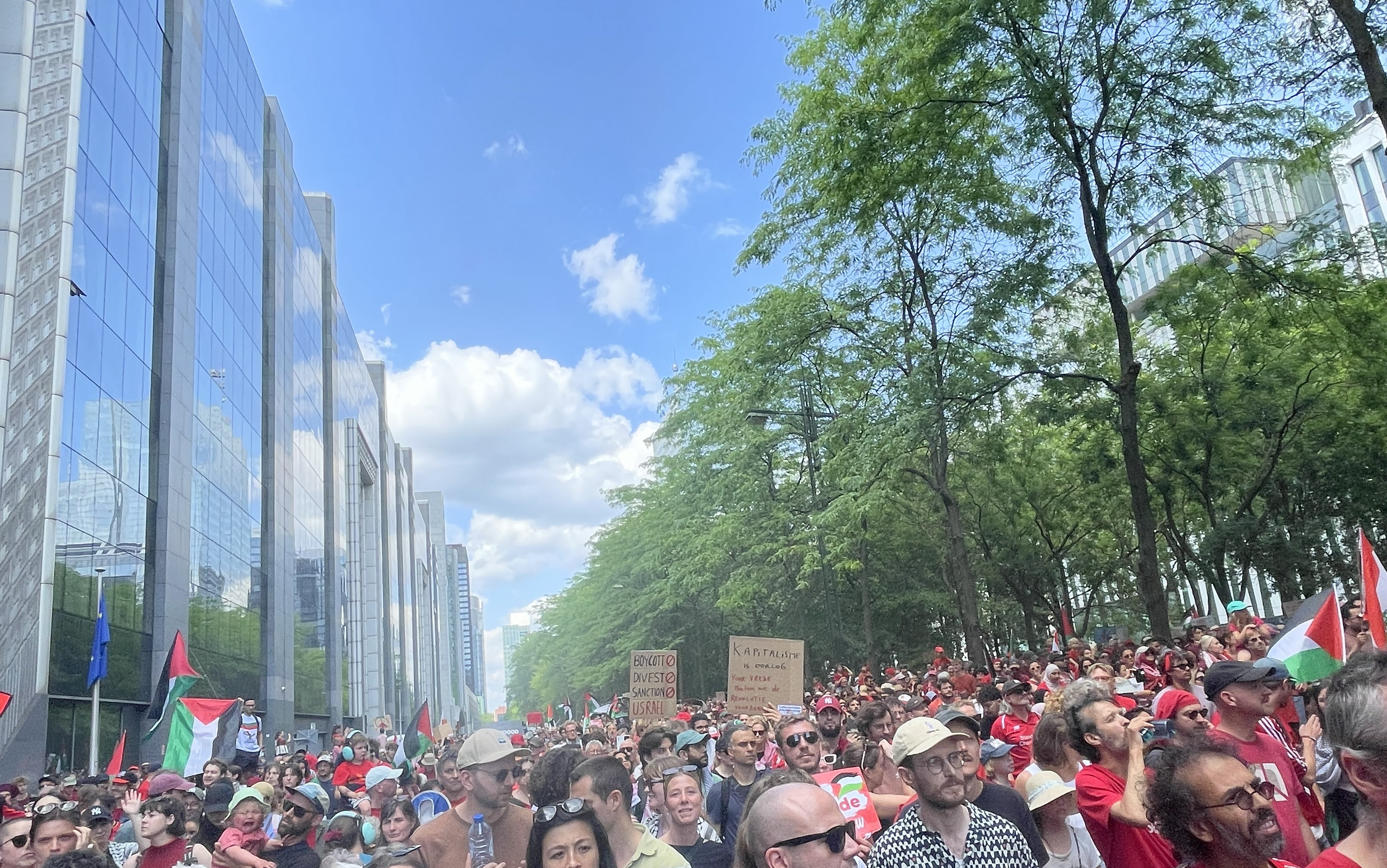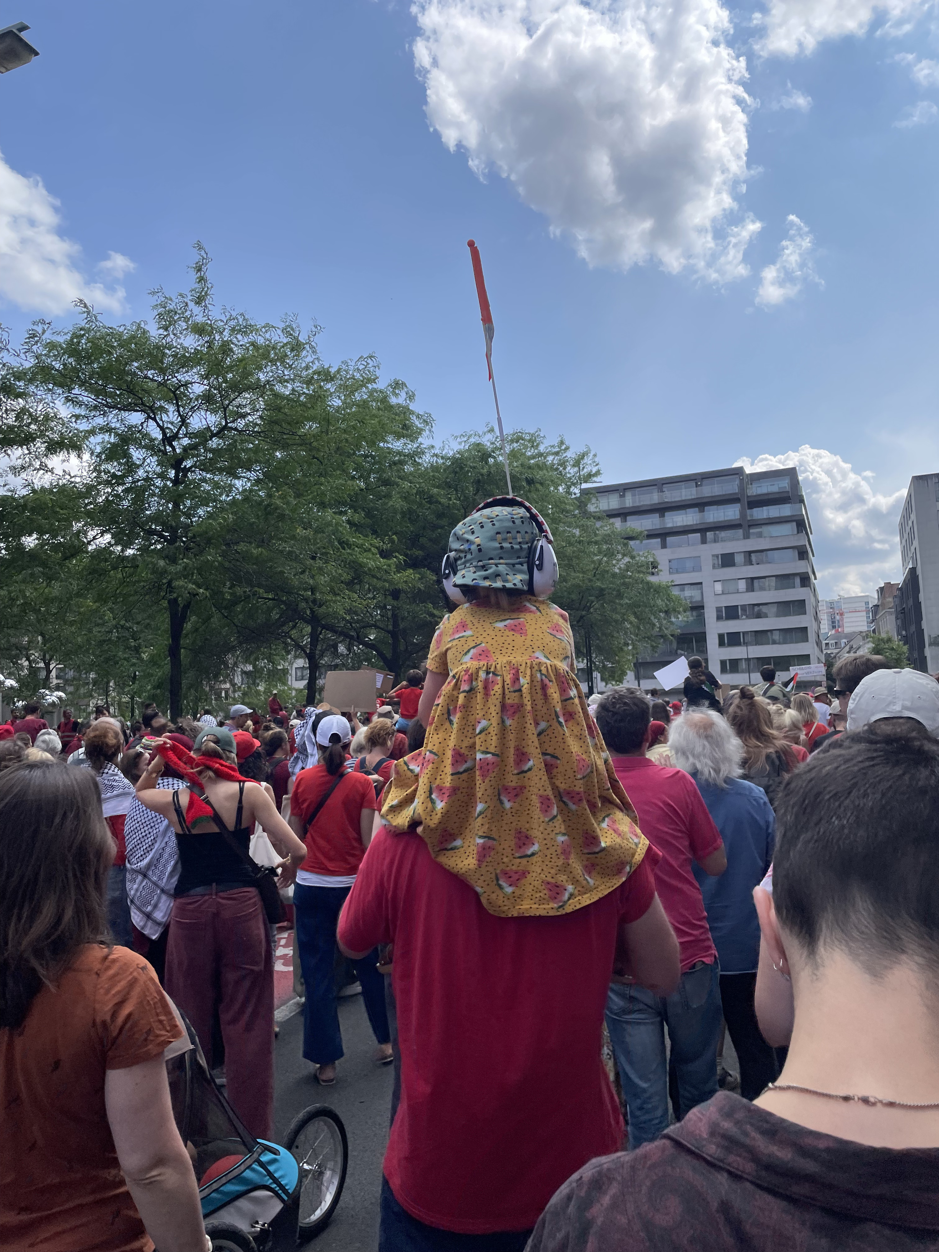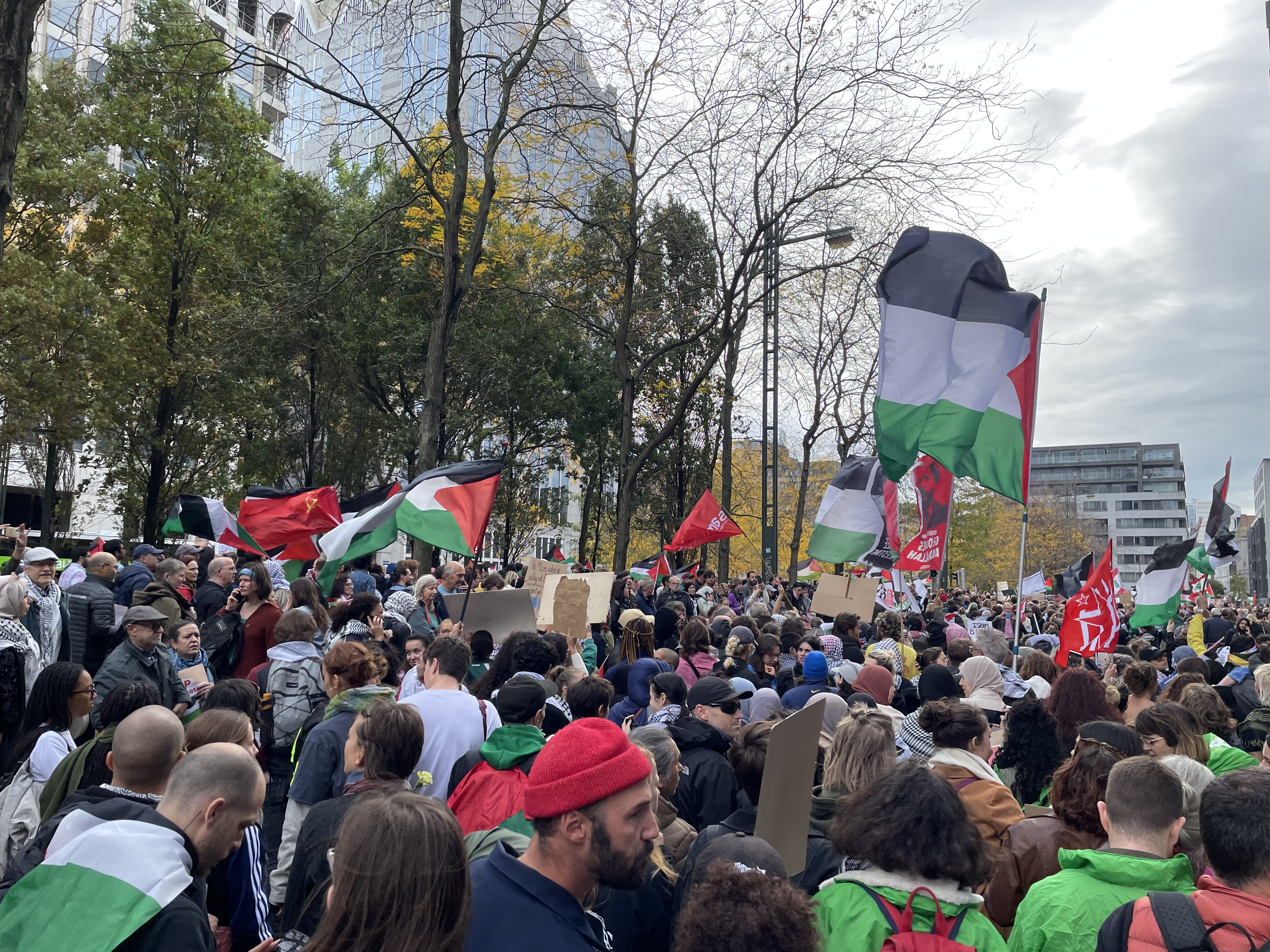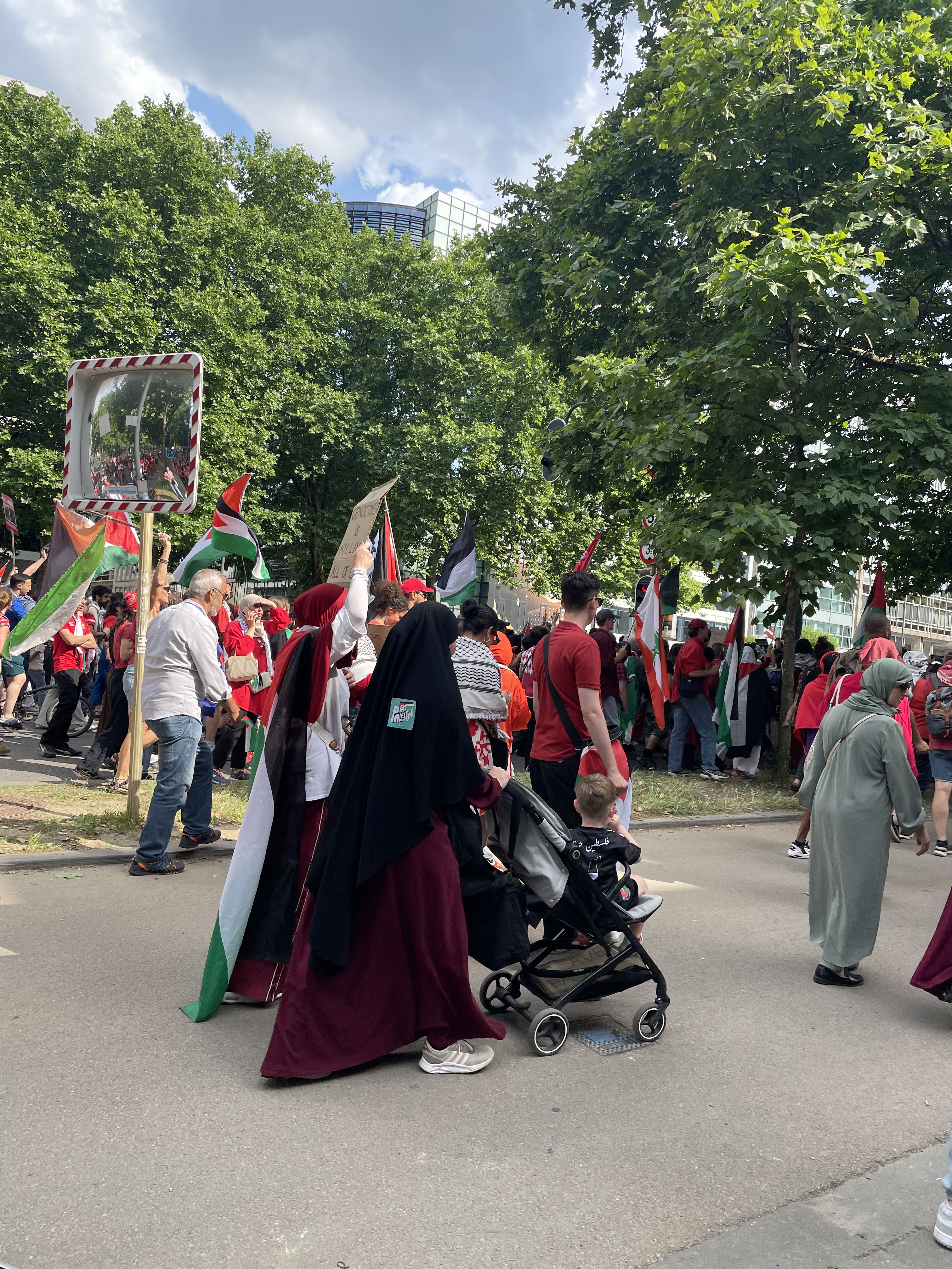 滞在中、行政が許可した数少ないパレスチナ連帯デモに参加した。2024年10月20日のデモには7万人が集まり、多くのパレスチナの旗が風になびいていた(À Bruxelles, des dizaines de milliers de manifestants exigent un cessez-le-feu au Proche-Orient, des organisations juives présentes)。参加者の年齢層は幅広く、小さな子どもを連れた家族の姿も目立った。子どもたちもシュプレヒコールをあげたり、バナーを掲げたり、積極的に役割を担っていた。